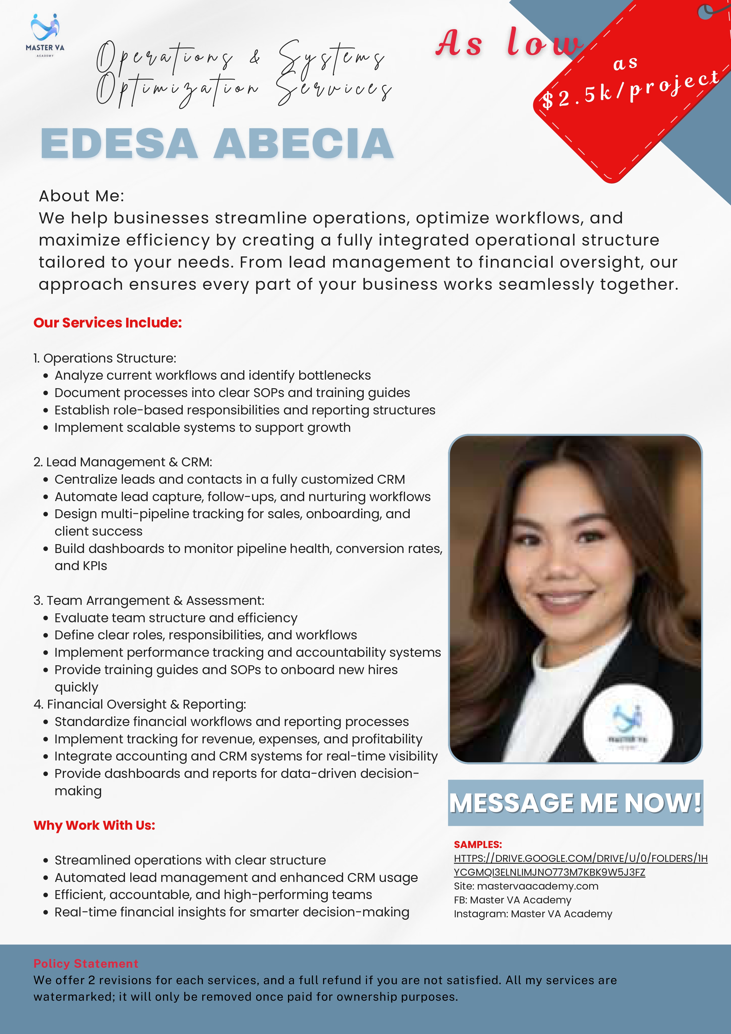 Every assistant goes through a thorough recruitment and verification process. This includes skill assessments, background checks, and training on our systems and client protocols. You can be confident that your dedicated assistant is reliable, skilled, and fully prepared to support your business.